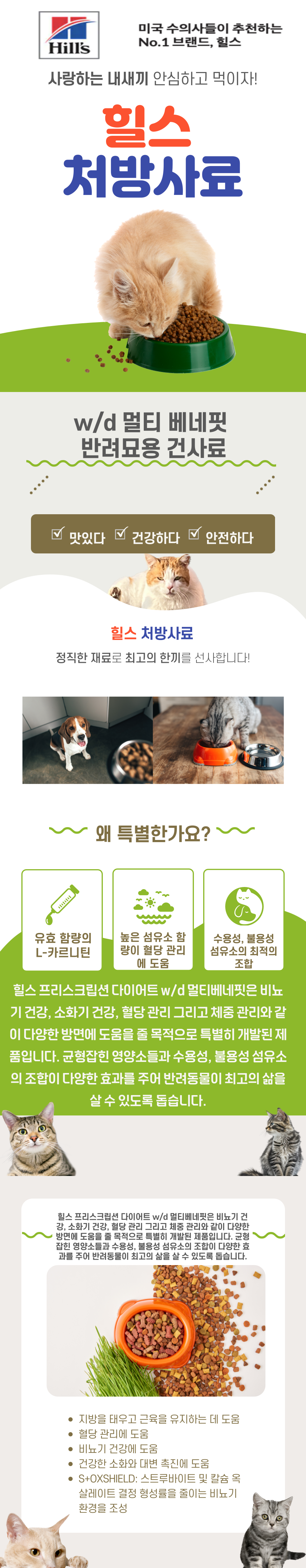 힐스 wd w/d 멀티 베네핏 반려묘용 건사료 1.5kg, 3.85kg