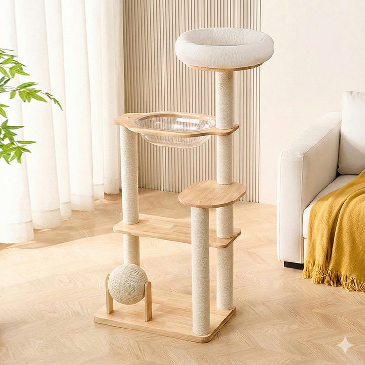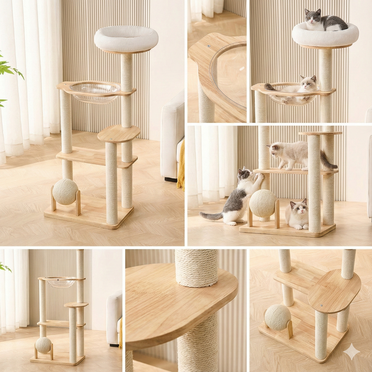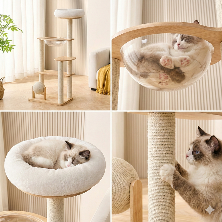 아그다 햇살 감성 가득 우주선 원목 내추럴 캣타워 03